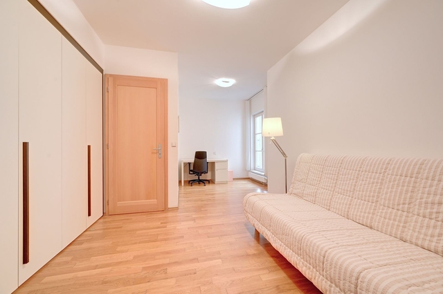 Dovolujeme si Vám nabídnout moderní částečně zařízený byt k pronájmu 4+kk v rezidenci Belwicz na Senovážném náměstí, Praha 1. Rezidence nabízí klidné bydlení v centru města. Celý dům prošel celkovou rekonstrukcí tak, aby splňoval kritéria pro nejmodernější bydlení. Byt se nachází ve třetím nadzemním podlaží tohoto krásného domu s výtahem. Byt o rozloze 130 m2 se nachází v zadní části budovy, tudíž se jedná o naprosto klidný byt a disponuje: vstupní chodba s vestavěnými skříněmi, obývací pokoj s kuchyňskou linkou a krásným výhledem do vnitrobloku. tří samostatné ložnice (dvě ložnice mají en-suite koupelnu), třetí toaleta odděleně a technická místnost s pračkou. K bytu patří jedno garážové stání, které je již zahrnuto v ceně. V domě je 24 hodinová recepce s ostrahou. V okolí je veškerá občanská vybavenost, školy, obchody, restaurace. malebné kavárny, obchodní centrum Palladium kde je také stanice metra Náměstí republiky je 6 minut chůzí. Nedaleko je tramvajová zastávka a stanice metra Můstek je 7 minut chůzí. Byt je k dispozici od 10.2.2026