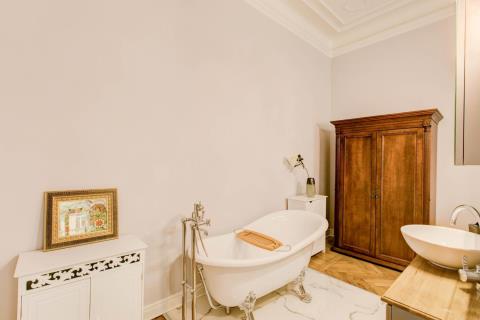 Nabízíme Vám k pronájmu tento výjimečný byt s třemi ložnice a třemi koupelnami na pražských Vinohradech. Byt je velkoryse vybaven a disponuje též prostorným balkónem, kde je možné grilovat či jen tak posedět. Balkón je orientovaný do klidného vnitrobloku. Byt se nachází ve zvýšeném prvním patře. Srdcem celého bytu je 35 m2 velký obývací pokoj spojený s kuchyní ve vysokém standardu. Odtud vedou dveře na obě strany, kde se nachází ložnice. Každá se svojí koupelnou. V jedné místnosti je koupelna součástí pokoje, je však oddělena stěnou uprostřed místnosti. V druhé ložnici je koupelna standardně mimo místnost. Do poslední třetí ložnice se dostaneme přes prostornou chodbu spojující vchod do bytu, obývací pokoj, extra toaletu a prostornou šatnu. I poslední ložnice má svoji koupelnu. Ze třetí ložnice je přístup na balkon. K bytu je k dispozici i prostorná sklepní kóje v přízemí. Zastávka metra kousek od bytu, tramvajová zastávka Šumavská je vzdálena asi 1 minutu chůze. Velké množství kvalitních obchodů, restaurací, kaváren a bister v docházkové vzdálenosti. Byt i dům jsou nádherně zrekonstruovány. Poplatky nejsou zahrnuty v ceně nájmu. Zájemce je srozuměn s úhradou provize ve výši jednoho měsíčního nájmu. K dispozici od 1. října 2025.
