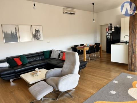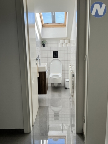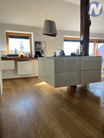 Už při vstupu je jasné, že tenhle byt není žádná tuctovka. 144 m² dokonale využitého prostoru, ke kterým se přidává velká terasa s krásným výhledem na město. Interiér je sladěný do příjemného, moderního stylu – dřevěné podlahy, kvalitní obklady, krásná koupelna a kuchyně z italského studia vybavená kvalitními spotřebiči, včetně americké lednice. Dominantou bytu je velký, vzdušný obývací prostor s rozsáhlým prosklením, který propojuje kuchyň, jídelnu a obývák. Každý den tu vychází slunce přímo do místnosti a večer to celé končí výhledem na nasvícené Prachatice. Vytápění zajišťuje vlastní plynový kotel, takže máte teplotu i náklady pod kontrolou. Byt se pronajímá kompletně zařízený – kvalitní nábytek, designové doplňky, vybavená kuchyně, všechno připravené k okamžitému nastěhování. Nemusíte kupovat vůbec nic. Nachází se v 1. patře, pod bytem jsou kancelářské prostory – klid, žádné dupání, žádní sousedi pod vámi. K bytu patří předzahrádka k možnému využití a vyhrazená parkovací místa přímo před domem. Lokalita Pod Cvrčkovem patří dlouhodobě k nejžádanějším v Prachaticích. Ticho, soukromí, skvělý výhled, pár minut do centra a příjemné sousedství. Nájemné: 22 000 Kč + energie 5 000 Kč měsíčně. K nastěhování nájemníků bude byt volný od března 2026. Prostor, styl, klid a dominantní terasa s panoramatem města – byt, který se v Prachaticích objevuje opravdu výjimečně.