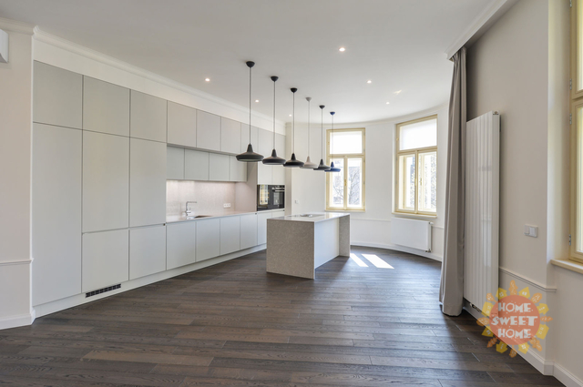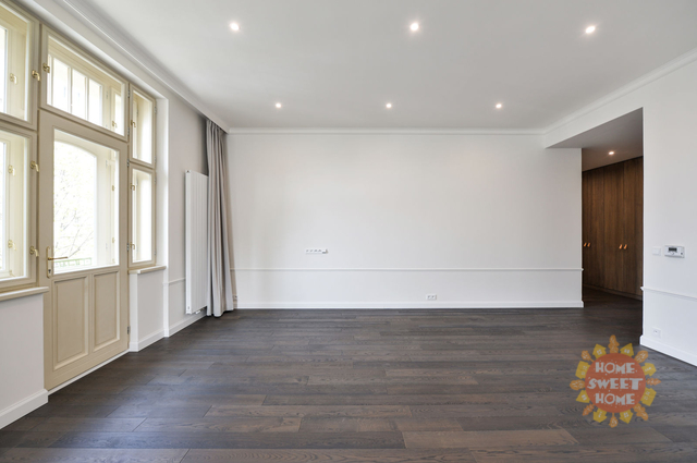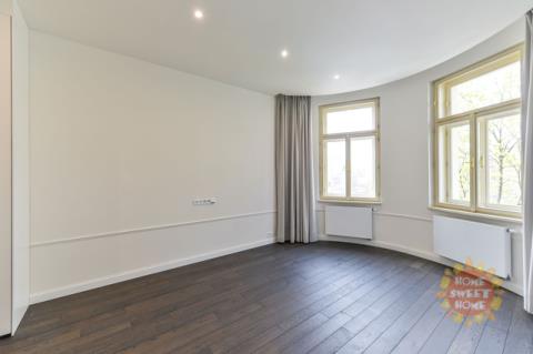 Nabízíme jedinečný zrekonstruovaný prostorný byt 4+kk (170m2 + 2m2 balkon) k pronájmu. Nadstandardní nezařízený byt se nachází ve druhém nadzemním podlaží citlivě zrekonstruovaného secesního činžovního domu s výtahem v oblíbené lokalitě pražských Vinohrad, v ulici Laubova. Dispozice bytu: obývací pokoj s kuchyní a jídelním prostorem, hlavní ložnice se šatnou a koupelnou (vana), druhá ložnice se šatnou a třetí ložnice (orientovaná do vnitrobloku), koupelna se sprchovým koutem, technická místnost a hala. Kuchyňský kout je plně vybaven moderními spotřebiči. Dostatek úložného prostoru – 2 x šatna, sklep, vestavěné skříně, klimatizace. V bytě použity kvalitní materiály, dubové parkety, designová dlažba, plynový kotel, bezpečnostní dveře. K dispozici pračka/sušička. Jedno parkovací stání vzdálené 350m od budovy je zahrnuto v nájmu. Luxusní bydlení v moderním bytě v srdci krásného secesního domu. Byt pro nejnáročnější. Exkluzivní lokalita na Vinohradech, přímo na náměstí Jiřího z Poděbrad. Kulturní a společenské centrum (farmářské trhy). Kompletní občanská vybavenost, v okolí mnoho příjemných restaurací, kaváren, bister a vináren. Obchodní centrum Flora 10 minut. Skvělá dopravní dostupnost, metro A i tramvajová zastávka v pěší dostupnosti. Dostatek zeleně – kousek od parku Riegrovy Sady.