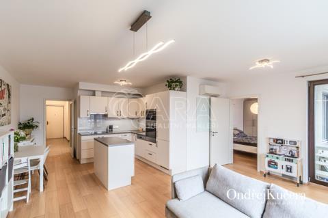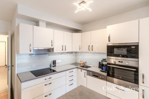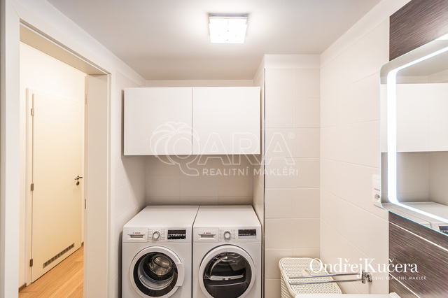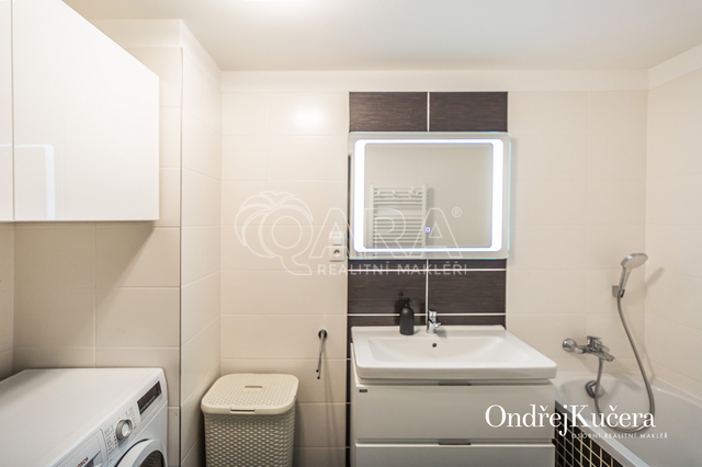 Neplatíte provizi. Atraktivní příležitost rodinného bydlení v bytě 4+kk s velkou terasou, vlastní zahrádkou, dvěma garážovými stáními a sklepem v rezidenčním projektu Nové Chabry na adrese K Beranovu 1200/20 - Praha 8, který patří dlouhodobě k nejúspěšnějším rodinným lokalitám v Praze. Kombinuje moderní architekturu a zázemí pro každodenní život. Tento byt o ploše 100 m2 a s celkovou výměrou 188 m2 včetně příslušenství (bez sklepa a garážových stání) se nachází ve zvýšeném přízemí nízkoenergetické novostavby z roku 2017. Je vybavený klimatizací pro komfortní bydlení. Dominantou bytu je světlý obývací pokoj s plně vybaveným kuchyňským koutem a prakticky umístěným ostrůvkem na práci i vaření. Na něj navazuje hlavní ložnice, která má vlastní koupelnu s toaletou a sprchovým koutem. Další dva samostatné pokoje jsou v zadní části bytu a lze je využít jako dětské pokoje, pracovnu nebo pokoj pro hosty. Hlavní terasa obklopuje celý byt a je přístupná z několika pokojů. Z terasy je dále vstup na soukromou zahradu. Díky velkým oknům a přímému vstupu na terasu a zahradu je prostor krásně vzdušný a světlý. Po vstupu do bytu vás přivítá prostorná předsíň s místem pro vestavěné skříně. Hned u vstupu je prakticky umístěna druhá samostatná toaleta. Další koupelna s vanou je pak v zadní části bytu, kde se nachází i prostorná komora. K bytu také náleží prostorný sklep 4,4 m2 a dvě parkovací stání v suterénu domu s kamerovým systémem. Lokalita a doprava: Nové Chabry je fungující čtvrť, kde se myslí na rodiny, bezpečí i komunitní život. mateřská škola přímo v areálu základní škola cca 700 m po bezpečné pěší trase obchody, restaurace, vinotéka, fitness & wellness dětská hřiště, sportoviště, komunitní centrum příroda na dosah: Ďáblický a Čimický háj, Drahanské údolí Dopravní dostupnost: auto: cca 15 minut do centra Prahy MHD: 5 minut autobusem na metro C do budoucna tramvajová zastávka cca 5 minut chůze Pokud hledáte kvalitní rodinné bydlení v Praze, kde není nutné dělat kompromisy mezi městem, přírodou a pohodlím, tohle 4+kk v Nových Chabrech je pro vás jako stvořené. Neplatíte provizi. Byt je k dispozici od května, po dohodě možná dříve. Nájemné činí 45.000 Kč měsíčně plus poplatky 8.000 Kč. Elektřina se přepisuje na nájemce. Pro více informací jsem Vám k dispozici. Ondřej Kučera osobní realitní makléř