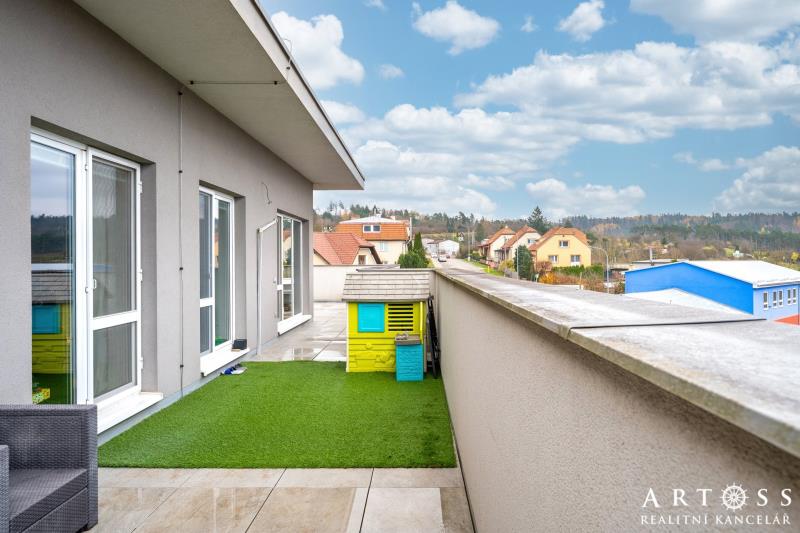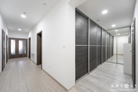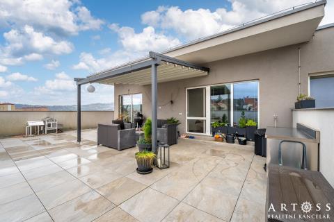 V exkluzivním zastoupení majitele nabízíme pronájem velice pěkného velkometrážního bytu 4+kk s nadstandardně velkou terasou a vlastním parkovacím stáním. Bytová jednotka se nachází v posledním patře cihlového bytového domu s výtahem, na ulici 9. května, Blansko. Byt je světlý příjemný a především prostorný. Nabízí se včetně kompletního vybavení - více bude upřesněno v den prohlídky. Pokoje jsou neprůchozí se vstupy na terasu. Velká přidaná hodnota bytu je obrovská terasa o výměře 100,91 m2 s krásným výhledem do okolí. Je to jakýsi kompromis mezi bytem a rodinným domem. Celková výměra bytu činní 211,04 m2 z toho obytná činní 110,13 a 100,91 m2 tvoří terasa. Jednotlivé výměry pokojů: obývací pokoj s KK - 38.27 m2 obytná místnost č. 1 - 12,24 m2 obytná místnost č. 2 - 11,27 m2 obytná místnost č. 3 - 14,69 m2 předsíň - 12,34 m2 koupelna - 10,63 m2 WC - 1,60 m2 šatna - 9,03 m2 K bytu patří vlastní parkovací stání. Nájem činní 35.000,- Kč / měsíčně + zálohy na služby (dle počtu osob). Kauce 2x nájemné. Byt volný od 1.5.2026 - případně po dohodě. Byt si můžete také projít přes 3D prohlídku - MATTERPORT. Prohlídky možné po dohodě s předstihem.