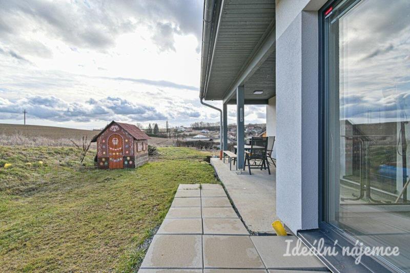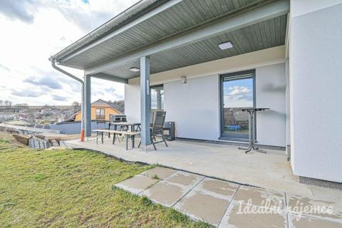Hledáte místo, kde ranní kávu doprovází klid venkova a večery můžete trávit u praskajícího krbu? Nabízíme vám k podnájmu výjimečnou novostavbu rodinného domu o dispozici 4+kk v oblíbených Radosticích u Brna. Tento dům s užitnou plochou 90m2 byl navržen s důrazem na vzdušnost, světlo a maximální praktičnost, což z něj dělá ideální zázemí pro rodinu i náročný pár. Srdcem celého domu je velkorysý obývací pokoj, který plynule přechází v jídelní kout a špičkově vybavenou kuchyni. Celý tento prostor je díky velkoformátovým francouzským oknům dokonale prosvětlen a nabízí přímý vstup na prostornou krytou verandu, která rozšiřuje obývací plochu o příjemné venkovní posezení. Interiér je zařízen v moderním skandinávském stylu, kde dominuje bílá barva v kombinaci s teplým dekorem dřeva. Kuchyňská linka je vybavena veškerými moderními spotřebiči včetně americké lednice a myčky, takže se můžete okamžitě nastěhovat bez nutnosti dalších investic. O váš tepelný komfort se v domě stará moderní klimatizace a pro vytvoření té správné domácí atmosféry jsou k dispozici stylová krbová kamna. Dispozice domu dále nabízí tři samostatné ložnice, které poskytují dostatek soukromí pro všechny členy domácnosti nebo prostor pro zřízení domácí pracovny. Velmi praktickým prvkem je oddělená technická místnost s pračkou a prostorná koupelna vybavená jak vanou pro relaxaci, tak sprchovým koutem pro rychlé ranní osvěžení. Dům se nabízí kompletně vybavený nábytkem přesně tak, jak jej vidíte na fotografiích, což vám ušetří spoustu starostí se stěhováním. Radostice samotné jsou skvělým kompromisem pro ty, kteří pracují v Brně, ale chtějí žít v dosahu lesů a cyklostezek. Cesta do jihomoravské metropole trvá přibližně 20 minut, zatímco klid a čistý vzduch máte přímo za okny.. Tento dům je připraven stát se vaším novým domovem, stačí si jen domluvit prohlídku a přesvědčit se o jeho jedinečné atmosféře na vlastní oči.