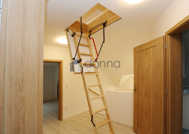Nabízíme pronájem nově zrekonstruovaného podkrovního bytu 4+kk, plocha 71m2 + podkroví 23m2, s předzahrádkou 63m2, v 1. patře rodinného domu, ulice V Nových Bohnicích, Praha 8 - Bohnice. Dům je zateplený a disponuje samostatným venkovním vstupem, který zajišťuje maximální soukromí a pocit vlastního domova. Vstupní hala, světlý obývací pokoj s kuchyňským koutem a krásným klenutým stropem, neprůchozí ložnice, další průchozí pokoj + menší pracovna či dětský pokoj, koupelna se sprchovým koutem a přípravou na pračku, samostatné WC a praktický podkrovní úložný prostor o ploše 23m². Byt je nabízen nezařízený – můžete si jej zařídit přesně podle svého stylu. Moderní kuchyňská linka je vybavena vestavěnými spotřebiči: sklo-keramická varná deska, elektrická trouba, myčka nádobí a digestoř; po dohodě lze doplnit lednici s mrazákem. Bydlení nabízí komfortní a praktické prvky: nové kvalitní ekologické podlahy Meister, elektrické předokenní žaluzie pro větší soukromí a tepelný komfort, internetové připojení k dispozici, možnost užívat část zahrady kolem domu a bezproblémové parkování zdarma přímo u domu. V okolí je mnoho zeleně i kompletní občanská vybavenost. V docházkové vzdálenosti je přírodní památka Bohnické údolí, Statek Vraných, nákupní možnosti nabízí OC Krakov a Lidl, nedaleko jsou také Botanická a Zoologická zahrada či Aquacentrum Šutka. Zastávka Staré Bohnice je 1 minutu pěšky od domu, metro C Kobylisy je dostupné přímým autobusem přibližně za 9 minut. Poplatek za energie a služby bude upřesněn dle počtu osob a způsobu užívání. K nastěhování ihned. Pronajímatel si vyhrazuje právo výběru nájemce.