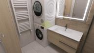 Kuchyňský kout je vybaven kuchyňskou linkou s indukční varnou deskou, elektrickou troubou, přípravou na myčku nádobí a samostatně stojící lednicí s mrazákem. V koupelně se nachází vana, umyvadlo, otopný žebřík a příprava pro pračku. Byt se pronajímá nevybavený, s výjimkou kuchyňské linky a spotřebičů.