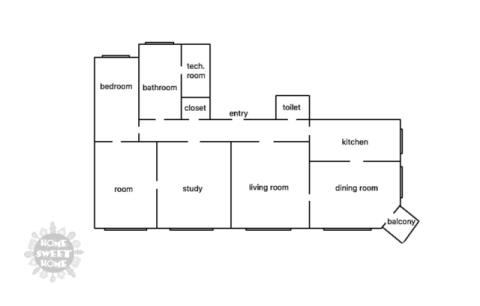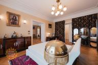 Interiér tvoří 1 ložnice s luxusní koupelnou (masážní sprchový kout, solitérní vana, toaleta, balkon do vnitrobloku), tři místnosti - ložnice, obývací pokoj a jídelna s balkonem do ulice, a plně vybavená velká kuchyň. Byt má dále prostornou vstupní halu, technickou místnost, úložnou komoru a toaletu pro hosty.