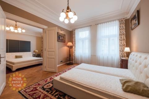 Nabízíme stylový luxusní zařízený byt k pronájmu, dispozičně řešený jako 5+1. Byt prošel důkladnou kompletní rekonstrukcí s důrazem na zachování původních architektonických detailů.