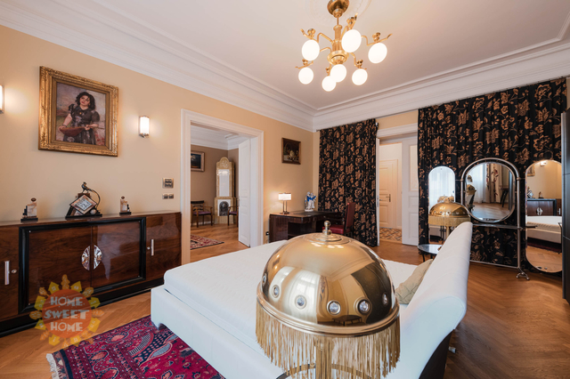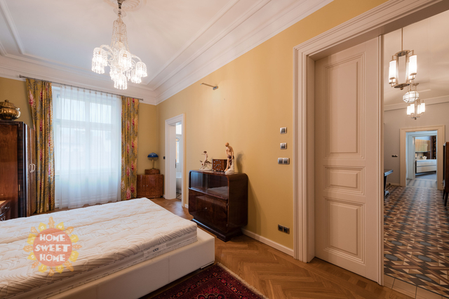 Jedinečné prvky secesního bytu navazují příjemnou atmosféru : vysoké stropy, štuky, masivní parkety, repasovaná kachlová kamna, designová původní svítidla. V bytě jsou bezpečnostní vstupní dveře, pračka, sušička, internet, alarm, videotelefon, bezpečnostní kamery.