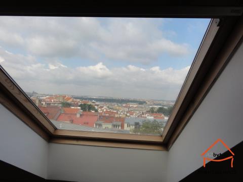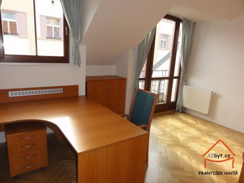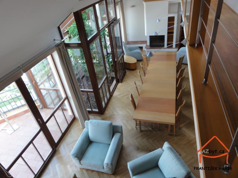 Nabízím k dlouhodobému pronájmu pěkný mezonetový byt o užitné ploše cca 268 m2 (dvě podlaží + galerie), který se nachází ve 3. a 4. patře cihlového domu, 5 minut od centra města. (Ve třetím patře je možné oddělit samostatný byt 2+kk, cca 50 m2 a pronajmout mezonet o ploše cca 218 m2 za 45 000 Kč měsíčně včetně poplatků + energie dle spotřeby.) Byt se zimní zahradou a terasou s panoramatickým výhledem (Pražský hrad, Vítkov) je kompletně zařízen (fotografie) včetně nově vybavené kuchyně a nových matrací. Dolní podlaží tvoří tři pokoje (20+20+22 m2), 2x koupelna, 2x toaleta, šatna, balkon, technická místnost, předsíň a schodiště. Horní podlaží se skládá z prostorného obývacího pokoje (57 m2) s krbem, zimní zahrady, terasy, kuchyně, pracovny a toalety. Vstup po dřevěném schodišti na galerii s pokojem, koupelnou a toaletou. Dispozice na přiložených půdorysech. Vytápění bytu a ohřev vody zajišťují tři plynové kotle, v technické místnosti automatická pračka. Na podlahách parkety a dlažba. Možnost internetu. Prostory jsou kolaudované jako byt, ale lze je využít pro sídlo firmy včetně bydlení apod. (ne ke krátkodobým pronájmům). Zdarma kryté parkovací stání ve dvoře domu. V domě není výtah. Preferujeme nájemce bez zvířat. Prostory budou připraveny k pronájmu počátkem února 2026. (Průkaz energetické náročnosti budovy zatím nebyl dodán, dle zákona proto uvádím energetickou třídu G.)