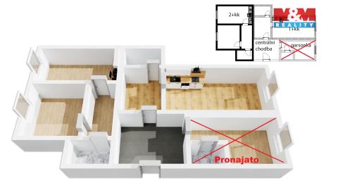 K pronájmu, Byt 2+1 Beroun, Bezručova