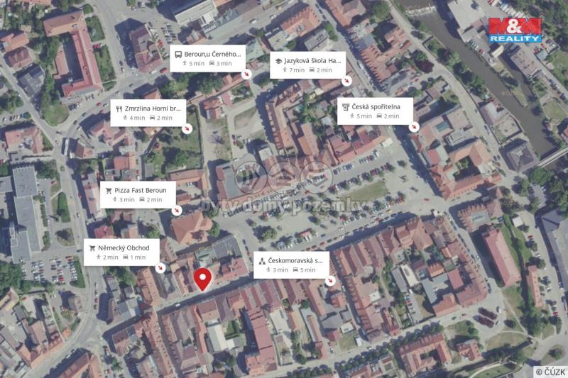 K pronájmu byt 2+kk v centru města Berouna, který se nachází v podkrovní části domu o podlahové ploše 90 m2. Byt je částečně vybavený menší kuchyňskou linkou, sporákem, lednicí, pračkou, sedačkou a skříněmi a je vytápěn plynovým kolem. V bytě je možno ubytovat vícečlennou rodinu a také je zde možnost využití pronájmu, např. na kancelář, služby, aj. V přízemí domu se nachází prodejna optiky, v prvním podlaží byt a v posledním podlaží pronajímané podkroví. Všechny podlaží mají jedno společné schodiště a hlavní společný vchod z ulice. Veškerá občanská vybavenost se nachází v okolí centra, parkování je možné na nedalekém náměstí za poplatek a nebo v parkovacím domě. Více informací v RK.