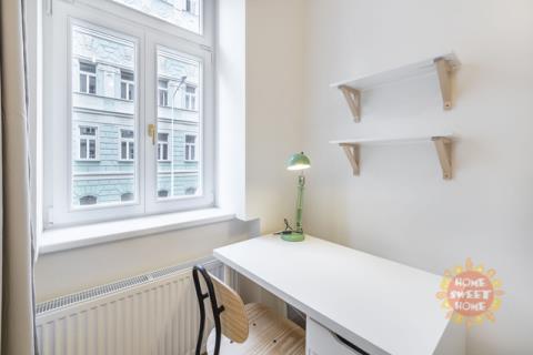 Nabízíme krásný, plně zařízený pokoj o velikosti 10 m², který se nachází v 2.patře residence Řehořova, Žižkov. Byt prošel kompletní rekonstrukcí. Pokoj je součástí pětipokojového bytu s plně vybavenou kuchyní, jídelním koutem, dvěma koupelnami a samostatnou toaletou. Společné prostory jsou kompletně vybaveny včetně žehličky, úklidových pomůcek a dalších potřeb pro běžný provoz. Samotný uzamykatelný pokoj je vybavený postelí, pracovním stolem, šatní skříní, přikrývkou a polštářem. Internet a úklid společných prostor (1× týdně) jsou již zahrnuty v ceně nájmu. Dům se nachází v oblíbené lokalitě blízko centra, jen pár minut od Vysoké školy ekonomické. V okolí je výborná občanská vybavenost - kavárny, restaurace, obchody a další. Dopravní dostupnost - 5 minut na stanici tramvají Viktoria Žižkov (1 stanice na metro Hlavní nádraží, linka C, 3 zastávky na Václavské náměstí). V blízkosti je několik rozsáhlých parků - Mahlerovy sady, Vítkov a Riegrovy sady. Bydlení je vhodné především pro studenty na střednědobý pronájem. Pokoj je volný od začátku února 2026.