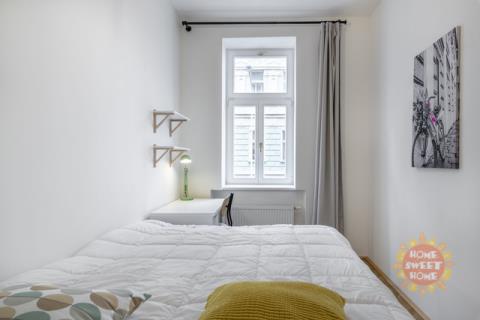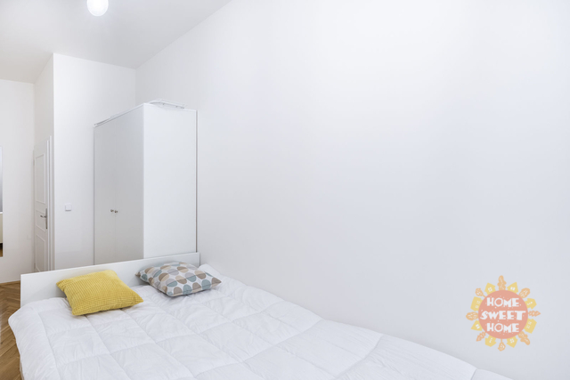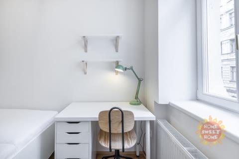 Krásný zařízený pokoj s manželskou postelí o celkové rozloze 13 m² se nachází v prvním patře Residenci Řehořova, Žižkov, Praha 3. Pokoj se nachází v 5 pokojovém bytě se sdílenými 2 koupelnami a další toaletou, kuchyní s jídelním koutem. Společné prostory jsou kompletně vybaveny: pračka, myčka, trouba, mikrovlnná trouba, varná konvice, toaster, žehlička, vysavač, mop, varná deska, nádobí. Pokoj je vybavený: postel, pracovny stůl, křeslo, skříň, přikrývka a polštář. Internet v ceně poplatků. Úklid společných prostor je již zahrnut v ceně nájmu, a to jednou týdně.