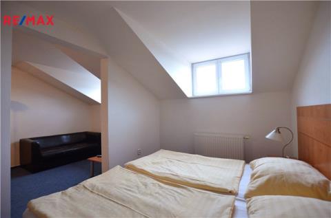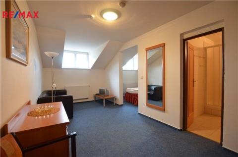Hledáte ubytování pro své zaměstnance nebo potřebujete hotelový pokoj k občasnému přespání, a to přímo v centru Tábora? K dlouhodobému pronájmu nabízíme apartmán v budově bývalého hotelu Slávie, nacházejícího se v blízkosti vlakového nádraží a hlavní pošty. Jedná se o atraktivní lokalitu v centru města s výbornou dopravní obslužností. Apartmán č. 306 se nachází ve 3. patře budovy s výtahem, která prošla částečnou rekonstrukcí - nový výtah, revitalizace chodeb atd. Příslušenství tvoří sociální zařízení, tj. samostatná koupelna se záchodem, umyvadlem a sprchovým koutem. Nabízený prostor je podkrovní, okna plastová, na podlaze je položen koberec. Pokoj je čistý, upravený, ideálně jako bydlení pro jednu osobu. Na patře není k dispozici kuchyň, nutný ohřev jídla v mikrovlnné troubě na pokoji. Hotelové apartmány jsou ideální především jako ubytování pro montéry, dělníky, řemeslníky, obchodní zástupce a jiné cestující z povolání (tj. především pracovníky, kteří jezdí o víkendech domů). Služby (záloha 2.400,-Kč/měs.) zahrnují vytápění, spotřebu elektřiny a vody; výše záloh bude případně upravena podle počtu osob využívajících pokoj. Vyúčtování bude provedeno podle skutečné spotřeby na základě měřidel. Jedná se o možnost dlouhodobého pronájmu, tj. nájemní smlouva bude uzavřena na 1 rok. Je nutno složit kauci ve výši tří nájmů. Odměna pro realitní kancelář ve výši jednoho nájmu + DPH, tj. 6.897,- Kč. Apartmán bude volný od 1.5.2026. Volné po dohodě. Pro více informací a prohlídku jednotlivých apartmánů kontaktujte makléřku nabídky.