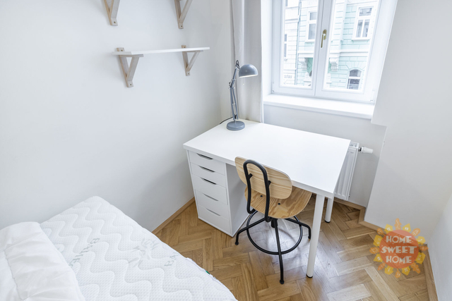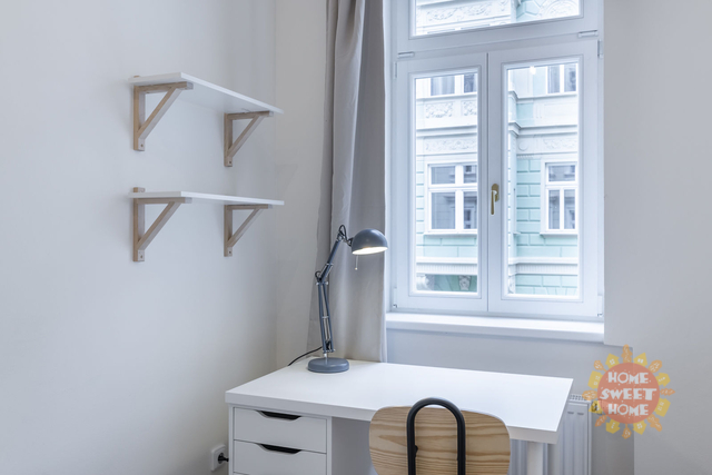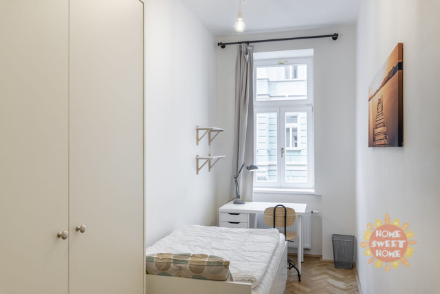 Nabízíme krásný, plně zařízený pokoj o velikosti 10 m², který se nachází v 1.patře residence Řehořova, Žižkov. Byt prošel kompletní rekonstrukcí. Pokoj je součástí pětipokojového bytu s plně vybavenou kuchyní, jídelním koutem, dvěma koupelnami a samostatnou toaletou. Společné prostory jsou kompletně vybaveny včetně žehličky, úklidových pomůcek a dalších potřeb pro běžný provoz. Samotný uzamykatelný pokoj je vybavený postelí, pracovním stolem, šatní skříní, přikrývkou a polštářem. Internet a úklid společných prostor (1× týdně) jsou již zahrnuty v ceně nájmu. Dům se nachází v oblíbené lokalitě blízko centra, jen pár minut od Vysoké školy ekonomické. V okolí je výborná občanská vybavenost - kavárny, restaurace, obchody a další. Dopravní dostupnost - 5 minut na stanici tramvají Viktoria Žižkov (1 stanice na metro Hlavní nádraží, linka C, 3 zastávky na Václavské náměstí). V blízkosti je několik rozsáhlých parků - Mahlerovy sady, Vítkov a Riegrovy sady. Bydlení je vhodné především pro studenty na střednědobý pronájem. Pokoj je volný od začátku února 2026.