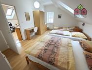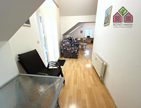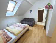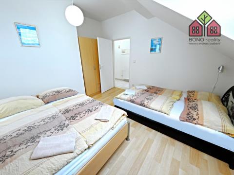 Jednotka, která je předmětem tohoto sdíleného pronájmu se pak nachází v podkroví domu a její celková plocha činí 94,15 m2, včetně prostorné terasy o výměře 10,68 m2 s nádherným výhledem do okolí a částečně i do lesa. V letních měsících lze na terase posnídat či obědvat, večer posedět s přáteli, ráj na zemi to bude i pro Vašeho menšího domácího mazlíčka. Před vstupem do jednotky je k dispozici společný prostor s botníkem. Vstup do bytu pak tvoří chodba, ze které lze vstoupit do obývací části s kuchyňským koutem, dvou samostatných pokojů a do koupelny. Z prostor kuchyně je poté přístup do třetího a největšího pokoje. V kuchyni je linka s dvou plotýnkovým vařičem, lednice i větší jídelní stůl. Obývací pokoj je vybaven velkou sedací soupravou a televizí. Z obývacího prostoru je pak vstup na terasu. Koupelna je zděná se sprchovým koutem, umyvadlem, automatickou pračkou a toaletou. Okna v jednotce jsou plastová a na podlaze je položena dlažba nebo linoleum. Vytápění jednotky zajištuje centrální automatický kotel na LTO, ohřev teplé vody pak elektrický bojler na 125l.