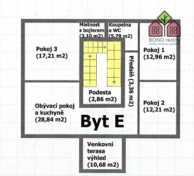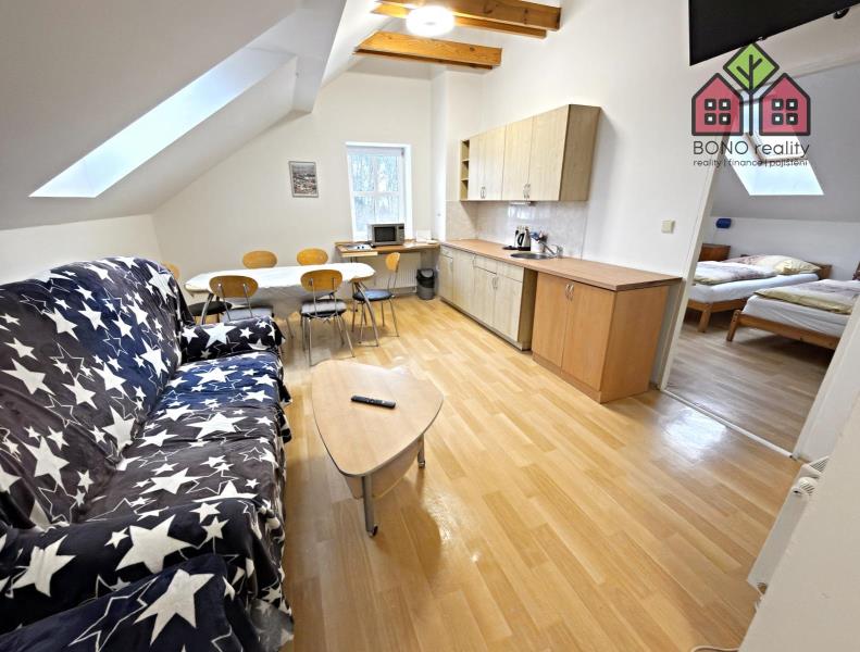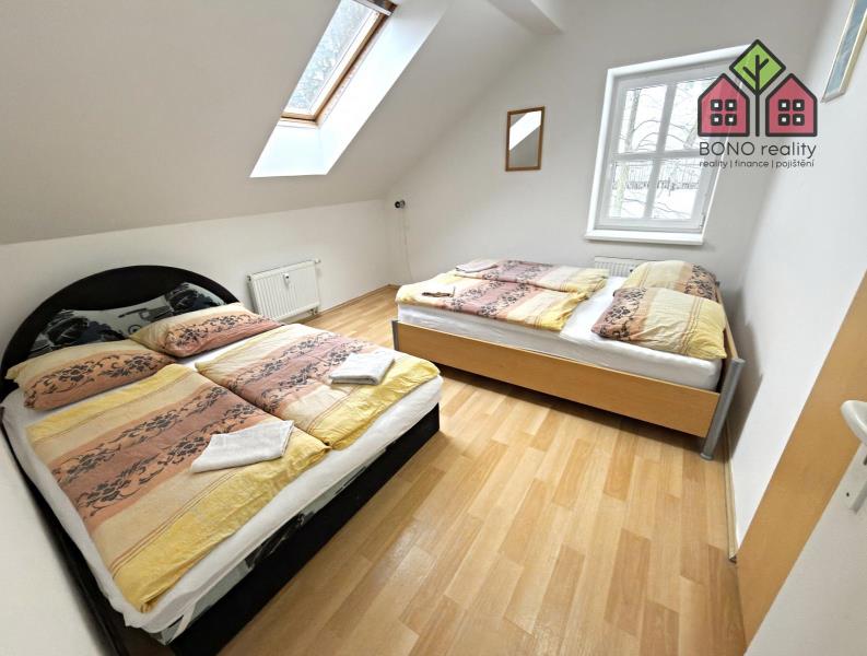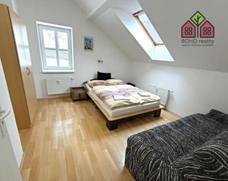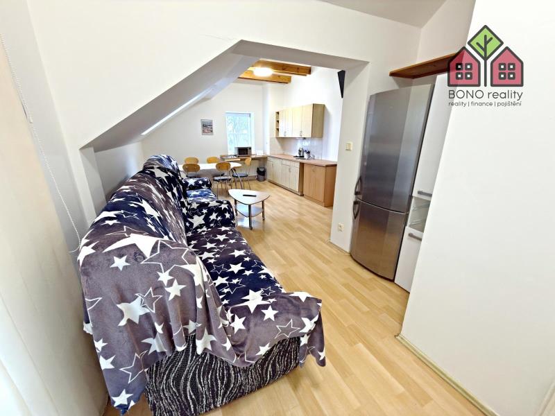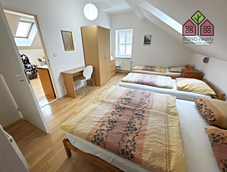 Realitní kancelář si Vám dovoluje nabídnout atypickou možnost řešení Vašeho ubytování i dlouhodobého bydlení. Nabízíme k pronájmu jednotku o dispozici 4+kk, a to jako formu sdíleného bydlení buď v jednotlivých pokojích nebo na jednotlivých lůžkách. K dispozici jsou tři samostatné pokoje a společný obývací pokoj s kuchyňským koutem a prostornou terasou a dále i společnou koupelnou. Jednotku si však lze pronajmout i jako celek za předpokladu, že se bude jednat o dobu nájmu minimálně na jeden rok. Forma sdíleného bydlení je vhodná například pro studenty, seniory či vícegenerační rodiny, vyloučena není ani možnost, že v pokoji bude dlouhodobě žít jedna osoba.