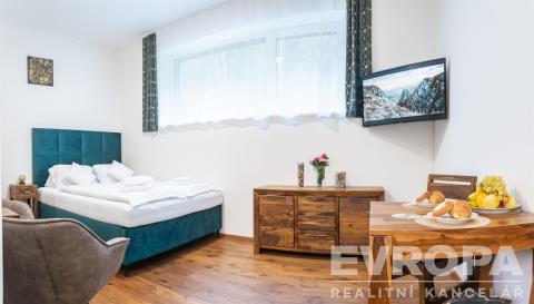 Nabízíme k dlouhodobému pronájmu moderní a nadstandardně vybavený byt/ateliér o velikosti 27 m² v přízemí nového apartmánového domu (kolaudace 2021) ve Vrchlabí, v ulici Horská. Byt je situován v privátním areálu s vlastním parkovacím stáním. Dispozice a vybavení bytu: • byt 1+kk, bezbariérový, ihned k nastěhování • plně vybavená kuchyňská linka se spotřebiči • masivní dřevěný nábytek, TV • koupelna se sprchovým koutem a sprchovým sloupem • luxusní dřevěné podlahy, podlahové vytápění s možností ovládání přes WiFi • elektricky ovládané venkovní žaluzie • rekuperace Příslušenství: • sklep s úložným prostorem, pračkou, sušičkou a sušákem na boty • vlastní parkovací stání v oploceném areálu • vybavenost bytu lze doladit po dohodě s konkrétním zájemcem Lokalita: Byt se nachází na trase z centra Vrchlabí do Špindlerova Mlýna. Podmínky pronájmu: • nájemné: 12 000 Kč/měsíc • záloha na služby: 1 616 Kč/měsíc • elektřina se převádí na nájemce • kauce: 30 000 Kč • provize RK: 12 000 Kč + DPH • podnájemní smlouva na dobu určitou 1 rok, s možností prodloužení • byt je určen pro solidního a solventního nájemce Byt je k dispozici ihned. V případě zájmu lze zajistit pravidelný úklid a praní (služby na vyžádání).