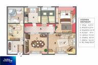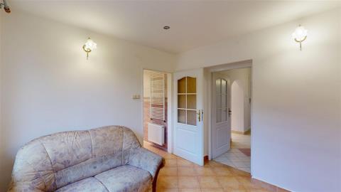 Vstupní chodba, koupelna, samostatná kuchyně, ložnice, prostorný obývací pokoj propojený s jídelnou, schodiště do patra a do suterénu.