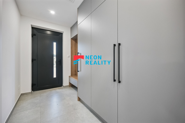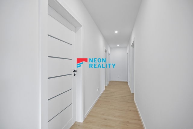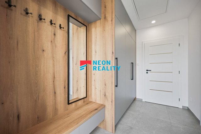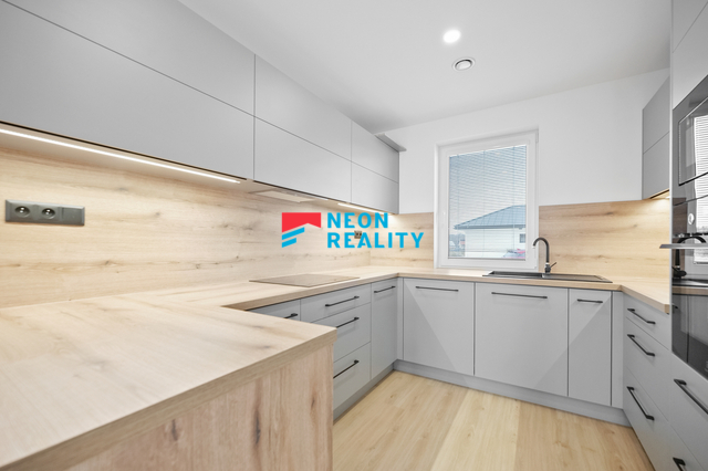 Tento dům v Bašce – Hodoňovicích zaujme především svou polohou, promyšlenou dispozicí a klidným charakterem nové rezidenční čtvrti. Rozhodování o domově totiž není jen o metrech čtverečních, ale o tom, jak prostor funguje v každodenním životě. A tady vše dává smysl. Nemovitost se nachází v klidné části obce, v nové rezidenční lokalitě tvořené patnácti samostatně stojícími rodinnými domy s jednotným architektonickým pojetím. Lokalita působí přehledně, bezpečně a kultivovaně, bez chaotické zástavby, zároveň s velmi dobrou dostupností do Frýdku-Místku i širšího okolí. Jedná se o samostatně stojící jednopodlažní rodinný dům (bungalov) s dispozicí 4+kk, užitnou plochou cca 101 m² a zastavěnou plochou 126 m², situovaný na rovinatém pozemku o výměře 853 m². Dům je nepodsklepený, se sedlovou střechou a nadčasovým architektonickým řešením, které přirozeně zapadá do okolní zástavby. Dominantou domu je hlavní obytný prostor s kuchyňským koutem, orientovaný do zahrady s přímým vstupem na terasu. Součástí pronájmu je nadstandardní kuchyňská linka se všemi spotřebiči a velkorysým úložným prostorem, která přirozeně navazuje na obytnou část. Dům dále nabízí tři samostatné pokoje, koupelnu s vanou i sprchovým koutem, samostatné WC a technickou místnost. Ve vstupní chodbě je připravena prostorná vestavěná skříň a součástí vybavení je také pračka. Technologické řešení domu odpovídá současným nárokům na komfortní a úsporné bydlení. Vytápění i ohřev teplé vody zajišťuje tepelné čerpadlo vzduch–voda značky NIBE s integrovaným zásobníkem o objemu 180 litrů. V celém domě je instalováno teplovodní podlahové vytápění, které zajišťuje vysoký uživatelský komfort a nízké provozní náklady. Komfort bydlení dále zvyšuje klimatizace a centrální rekuperace. Dům je napojený na veškeré inženýrské sítě a nově vybudovanou infrastrukturu rezidenční čtvrti. Samozřejmostí je optický kabel pro vysokorychlostní internet, příprava na wallbox pro elektromobil a ve všech oknech instalované vnitřní žaluzie. Součástí exteriéru je terasa, která bude doplněna o bioklimatickou pergolu o rozměru 4 × 4 metry, čímž vznikne plnohodnotný venkovní obytný prostor využitelný po většinu roku. Pozemek bude dokončen včetně finálních terénních úprav a kompletního oplocení. Parkování pro dvě vozidla je zajištěno přímo na pozemku. Zahrada je koncipována jako klidový prostor pro odpočinek, nikoliv jako údržbově náročná plocha. Měsíční nájemné činí 35.000 Kč. Zálohy na vodu 1.000 Kč/měsíc (s možností úpravy dle počtu osob). Elektřina bude převedena na nájemce, orientačně cca 4.000 Kč/měsíc. Internet si nájemce zajišťuje samostatně. Velkou výhodou je možnost nastěhování jako první nájemci a dlouhodobé využití domu bez kompromisů. Dům bude k dispozici od 1. 5. 2026, osobní prohlídky jsou možné již nyní.