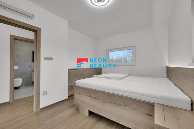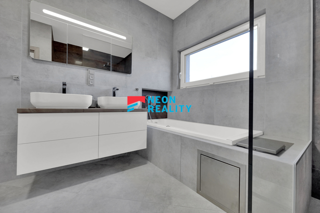 Zcela nově dokončovený řadový dům s moderními technologiemi v Bohumíně 15 minut po dálnici od Ostravy? Nabízíme Vám pronájem novostavby v Bohumíně na ulici Ostravská.Patrový RD o podlahové ploše 120m2 a pozemkem 236m2. Rok po kolaudaci domu, v zánovním stavu! Jedná se o dvoupodlažní řadový dům s velmi dobrým dispozičním řešením 4+KK. Obývací prostor s přímým vstupem na částečně krytou terasu, propojený s kuchyňským koutem, moderní kuchyňská linka na míru včetně kvalitních vestavných spotřebičů (lednice, parní trouba, myčka, digestoř). Technická místnost a prádelna se shozem s horní koupelny. Horní podlaží se skládá ze tří samostatných ložnic, kdy dva mají vstupy na krytou terásku a také prostorná koupelna se sprchovým koutem i vířivou vanou, moderní obklady. Při stavbě kladen důraz na detail, nízkoenergetické a nadčasové pojetí. V domě vinylové podlahy, snížené stropy s led osvětlením, instalovány interiérové dveře, vymalováno. Každá místnost má svou klimatizační jednotku. Elektricky polohovatelné rolety v oknech. Vyklápěcí schůdky na plně pochozí půdu, kterou lze využívat jako odkládací prostor. Vytápění tepelným čerpadlem, vodní podlahové vytápění všech místností, velmi nízké náklady na provoz (okolo 2000Kč/měs). Dům bude mít oplocenou zatravněnou zahrádku včetně zahradního domku s dostatkem úložných prostor. Hned podél pozemku vede cyklostezka vybízející k projížďkám. V blízkosti napojení na dálnici s dojezdem do 15ti minut do Ostravy. V blízkosti škola, školka, obchody, lékaři, tenisové kurty apod. Hledáte klidné moderní bydlení s dostupností města, ale dostatkem klidu a fajn sousedy? Pokud si tedy v době stále vysokých sazeb hypoték chcete konečně splnit sen o bydlení v novém domě formou nájmu, rád Vás osobně provedu a seznámím s detaily.