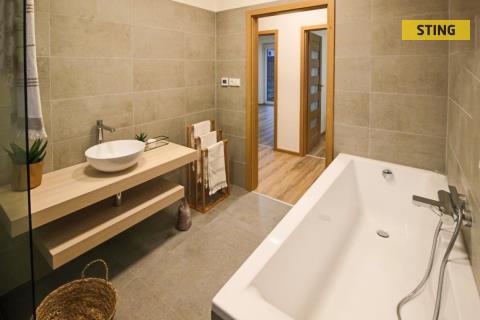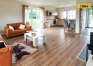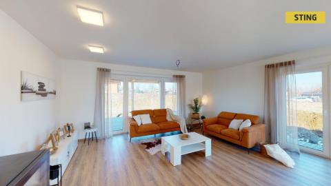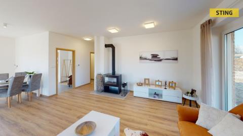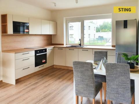Nabízíme k pronájmu novostavbu zděného domu s pozemkem o výměře 1244 m2, v klidné a tiché části obce Dolní Domaslavice. Dům s energetickou náročností "B" velmi úsporná je vystavěn z Porothermu, vytápění podlahové elektrické, obývací pokoj s jídelnou a kuchyní lze vytápět i krbovými kamny. Dům je připojen na dálkový vodovod, ohřev vody El. bojlerem a odpady svedeny do pevné plastové jímky. Omítky vnitřní vápenné štukové, fasáda omítky silikonové, sedlová střecha z AL plechu. Dispozice bytu je 4 kk, prostorný obývací pokoj oddělený od kuchyně jídelním koutem ( kuchyňská linka je vybavena varnou deskou, el. troubou, vestavěnou myčkou a mikrovlnou troubou ), ložnice, dva dětské pokoje, nebo dětský pokoj a pracovna. Z každého jednotlivého pokoje je samostatně možnost výstupu do zahrady francouzským oknem. Tento od vnějšího pohledu menší, ale uvnitř prostorově dostatečně velký dům má v 1. NP ještě komoru, koupelnu s vanou, s proskleným sprchovacím koutem a WC. Pozemek je rovinatý s příjezdem po obecní asfaltové komunikaci. Před domem je na vlastním pozemku parkovací stání pro 2 osobní vozy.