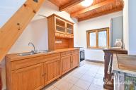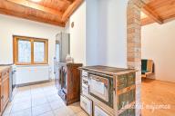 Dům je vybaven v prvním patře: kuchyňskou linkou, plynovým sporákem na bombu, starší velká lednice, dvě tělesa (topení) ,stropní světla, kachlový sporák vestavný (je možné v něm topit dřívím (podzimní dny krásně vytopí) samozřejmě i vařit na plotně a péci v troubě je možné.
