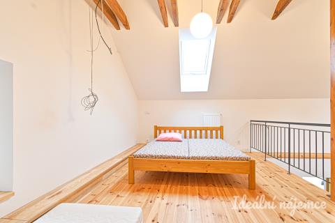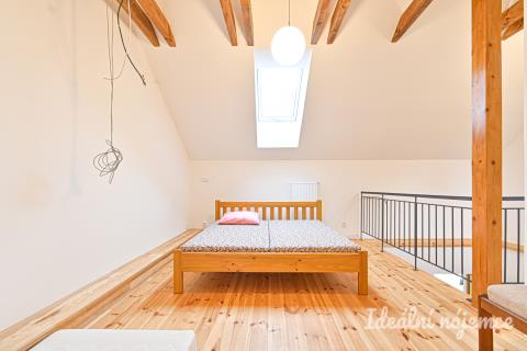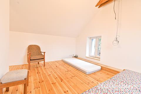Otevřené podkroví má novou manželskou postel, křeslo a jednu šatní skříň, dvě tělesa - topení, sada k internetu - eurosignal.