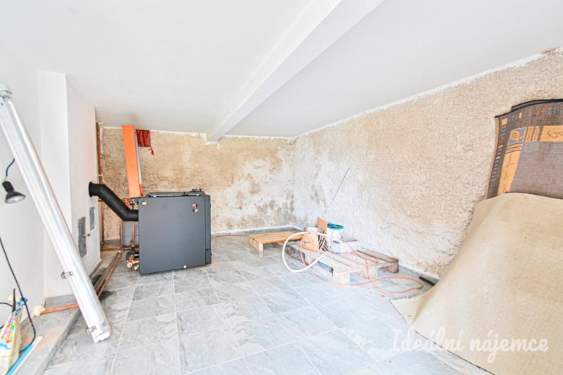 Vedle je místnost s kotlem na dříví a uhlí, brigety nově osazený typ OPOP 12 kw, bojler a místo na věci.