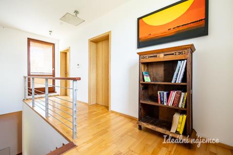 K dlouhodobému pronájmu nabízíme plně zařízený dvoupodlažní rodinný dům dispozice 4+kk o rozloze 131 m2 na prostorném pozemku se zahradou v klidné rezidenční lokalitě středočeských Měšic nedaleko Prahy. Přízemí vévodí rozlehlý obývací pokoj výměry přes 33 m2 s dobře vybaveným částečně odděleným kuchyňským koutem s přírodním osvětlením. Na každém podlaží je jedna ložnice a koupelna s toaletou, v horním patře je pracovna s přístupem na terasu. Vytápění domu a ohřev vody je realizován plynovým kotlem. Kromě zahrady samotné je k užívání k dispozici i bazén a sauna. Součástí měsíčních záloh jsou již energie a vysokorychlostní internet. K dispozici solidním zájemcům hledajícím dlouhodobé kvalitní bydlení k okamžitému nastěhování. Individuální prohlídky možné po domluvě kdykoliv včetně pozdních večerních hodin a víkendů. Byt pronajímá Ideální nájemce - služba, se kterou budete bydlet bezstarostně a za férových podmínek. Když se něco přihodí, k dispozici jsou správci, kteří s Vámi vše vyřeší. Pomůžeme s veškerou administrativou, s nastavením plateb a zajistíme Vám speciální pojištění. Pojďte bydlet s námi!