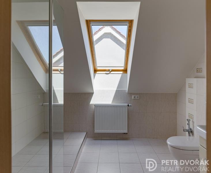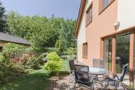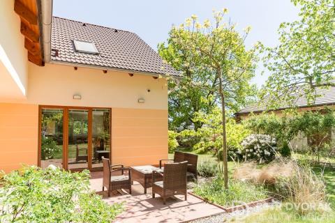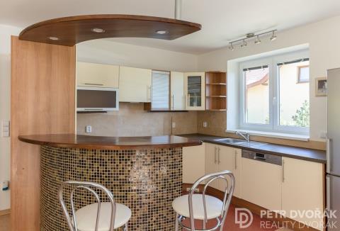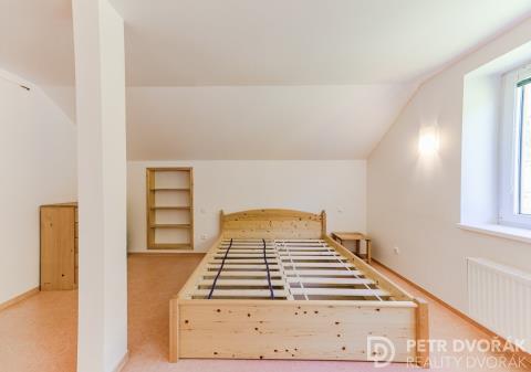 Nabízíme k pronájmu rodinný dům o dispozici 3+kk se dvěma terasami, situovaný v klidné rezidenční části Mníšku pod Brdy, v bezprostřední blízkosti lesa a přírody. Interiér domu je řešen s důrazem na funkčnost, dostatek denního světla a komfortní bydlení. V přízemí se nachází obývací pokoj s krbovými kamny, plynule propojený s kuchyní a jídelní částí, dále samostatný pokoj, koupelna, komora a technická místnost. Z obývacího pokoje i přilehlého pokoje je přímý vstup na terasu orientovanou na jihozápad, která poskytuje příjemné místo k posezení. Druhá, menší terasa navazující na jídelní část je orientována na jihovýchod. V patře je umístěna prostorná ložnice s výhledem do zahrady, koupelna a úložné prostory. Ložnice je orientována na severozápad, což zajišťuje klid a soukromí. Dům se pronajímá kompletně vybavený. Kuchyňská linka je osazena indukční varnou deskou, pečicí troubou, digestoří a lednicí s mrazákem, součástí je také jídelní stůl se židlemi. Obývací pokoj je zařízen sedací soupravou, křeslem, konferenčním stolkem a televizním nábytkem. V patře je ložnice vybavena manželskou postelí a vestavěnými šatními skříněmi. Koupelny jsou vybaveny sprchovými kouty, v přízemí je navíc toaleta a bidet. Technické zázemí domu odpovídá moderním nárokům na úsporný provoz. Vytápění je řešeno tepelným čerpadlem, v přízemí je instalováno podlahové vytápění, v ostatních částech domu deskové radiátory. Podlahy tvoří marmoleum a keramická dlažba. Součástí pronájmu je udržovaná okrasná zahrada se vzrostlou zelení, o kterou je postaráno pomocí robotické sekačky. Na pozemku se nachází zahradní domek pro uložení techniky. K domu náleží 2 venkovní parkovací stání na pozemku. Lokalita nabízí kombinaci klidného bydlení v přírodě a dobré dostupnosti Prahy. Autobusová zastávka se nachází přibližně 1 km od domu, centrum Mníšku pod Brdy poskytuje základní občanskou vybavenost. K dispozici od 1. 4. 2026. V případě zájmu o více informací nebo sjednání prohlídky kontaktujte realitního makléře.