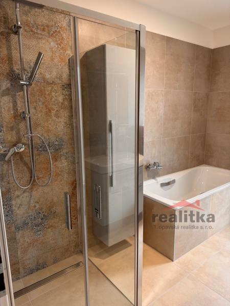 Nabízíme k pronájmu energeticky úspornou novostavbu 4+kk v Milostovicích u Opavy. Jedná se o nízkoenergetický přízemní dům o celkové ploše 103m2 na pozemku 774m2 s krytým parkovacím stáním a zahradou. Nemovitost splňuje moderní nároky na komfortní a úsporné bydlení. Vstupní chodba poskytuje přístup jak k hlavnímu vchodu do bytu, tak na samostatné WC a průchozí sprchový kout. Z chodby jsou dále vstupy do jednotlivých neprůchozích pokojů, prostorné šatny, koupelny s vanou, WC, sprchovým koutem a do prostorného obývacího pokoje s krbovými kamny, klimatizací a s plně vybavenou kuchyňskou linkou. Z obývací části vede vstup na terasu s krásným výhledem a přístupem na zahradu. Technické vybavení domu • Tepelné čerpadlo vzduch–voda Vaillant • Rekuperační jednotka Vaillant • Fotovoltaická elektrárna o výkonu 7,2 kW včetně bateriového úložiště 10,6 kW • Klimatizace • Krbová kamna s teplovodním výměníkem napojeným do akumulační nádrže pro ohřev vody • Kuchyňská linka včetně spotřebičů (indukční deska, trouba, mikrovlnná trouba, myčka, lednice s mrazákem, digestoř, LED osvětlení) Dům spadá do kategorie velmi úsporný, což zajišťuje nízké provozní náklady. Nachází se na okraji obce v klidném prostředí na jižně orientovaném mírně svažitém pozemku. Do centra Opavy se dostanete za cca 10 minut (asi 5 km). V obci najdete KD, knihovnu, sportoviště TJ, MŠ a úřad městské části, potraviny Terno 4km. Těšíme se na zodpovědné a seriózní nájemníky. Finanční podmínky • Nájemné: 26.000 Kč / měsíc • Energie: budou přepsány na nájemníka (elektřina), voda zálohově • Vratná kauce: 52.000 Kč • Poplatek RK: 20.000 Kč