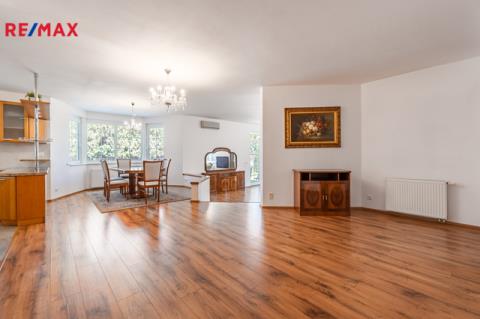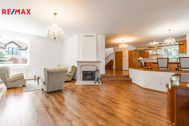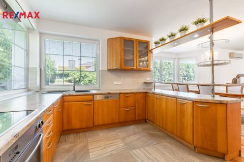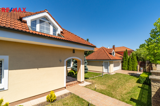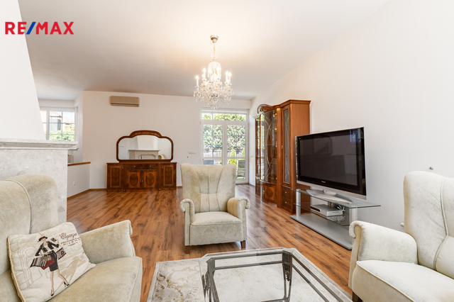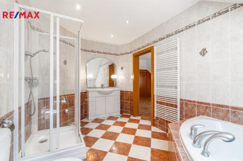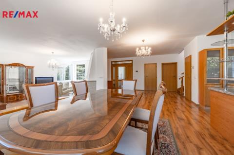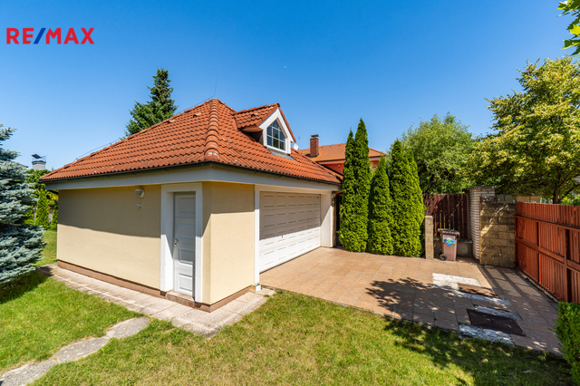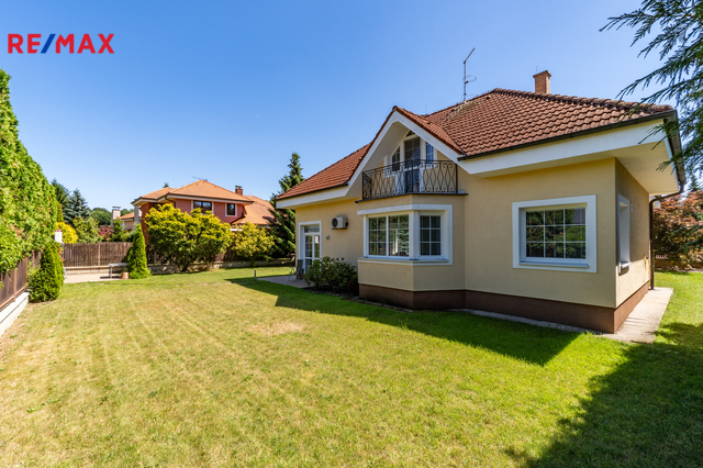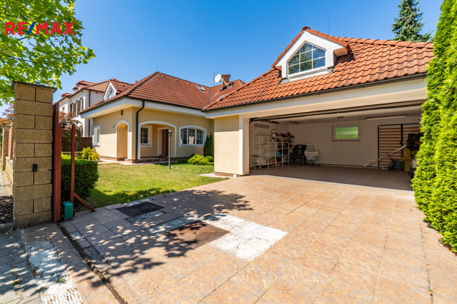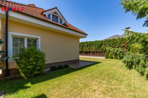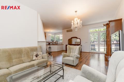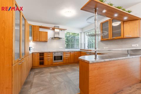K dlouhodobému pronájmu nabízím prostorný rodinný dům v ulici Jitrocelová, Průhonice. Dům s dispozicí 5+kk a podlahovou plochou 254 m² se nachází na pozemku o celkové výměře 764 m² (z toho 204 m² je zastavěná plocha, zahrada má 560 m²). Příslušenstvím domu je samostatně stojící garáž pro dvě auta s bohatým úložným prostorem v půdním prostoru. Srdcem domu je vzdušný obývací pokoj s jídelnou a kuchyňským koutem. Tento centrální prostor má téměř 83 m² a poskytuje tak komfortní a reprezentativní zázemí pro celou rodinu i případné hosty. Dále v domě naleznete čtyři prostorné ložnice, tři v patře a jednu v přízemí. Z každé ložnice je přímý vstup do koupelny, k jedné ložnici v patře náleží balkon. Celkem jsou v domě tři plnohodnotné koupelny, dvě v patře a jedna v přízemí. Dále je v přízemí samostatná toaleta. Praktické úložné prostory poskytují celkem 3 komory v domě. Dům je vybaven centrálním vysavačem. V obývacím pokoji najdete klimatizaci a krb. Samozřejmostí je elektronické zabezpečovací zařízení s možností napojení na pult centrální ochrany. Dům se nabízí zařízený vestavěným nábytkem, spotřebiči a dále dílčím vybavením, které je vyobrazeno na fotografiích. Zahrada domu poskytuje vítané soukromí. Dům je situován v klidné ulici v neprůjezdné oblasti, jen 4 minuty chůze od přírodního zákoutí povodí potoka Botiče, které navazuje na rozlehlou Dendrologickou zahradu. Jen 2 minuty chůze je vzdálena autobusová zastávka s přímým spojení na metro C, stanice Opatov (12 minut jízdy). Průhonice jsou oblíbenou lokalitou k bydlení pro svou pohodlnou dostupnost do centra Prahy, blízkost přírody a kvalitu lokálních služeb. Za nákupy, za sportem i za zábavou to máte vždy jen několik málo minut. Měsíční nájemné je 70 000,- Kč. Zúčtovatelné zálohy jsou ve výši 15. 566,- Kč včetně napojení na pult bezpečnostní ochrany ,elektřiny a plynu (převádí se na nájemníka). Jistota (kauce) je ve výši 140 000,- Kč. Neplatíte provizi RK. K nastěhování ihned. Těším se na viděnou na prohlídce!