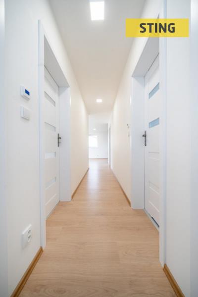 Nabízíme k pronájmu novostavbu řadového domu o vel. 4kk (obytná plocha cca 93m2)s terasou a se zahradou na ul. Jabloňova, Rychvald. Dům se nachází na konci slepé ulice, s minimálním provozem, v blízkosti lesa, luk a polí. Půdorys domu - vstupní chodba (zádveří), technická místnost s WC, kde je umístěn i bojler o objemu 180l. Otevřený prostor mezi kuchyňským zázemím s obývacím prostorem (rozměr 34,52m2, umístěna krbová kamna), přes balkónové dvoukřídlé dveře vstup na terasu s úžasným výhledem do okolí. Kuchyňská linka na míru se zabudovanými spotřebiči: myčka, varná deska, trouba, mikrovlnka, lednice, digestoř. Do dalších místností individuální vstup (rozměry jednotlivých pokojů -10,38m2, 15,29m2, 13,81m2), zajištěno tak soukromí každého člena rodiny. Koupelna - obklady a dlažba v nadčasovém odstínu, vana, sprchovací kout, 2x designové umyvadlo se skříňkou, WC. Dům je kompletně zateplený (tepelná izolace EPS 70F tl 150mm), zdivo PORFIX 250. Podlahové vytápění, elektrické rohože ovládané programovatelnými termostaty pro každou místnost samostatně. Střecha sedlová, krytina plechová BLACHOTRAPEZ. Energetická třída náročnosti budovy - C. Pozemek oplocen. Občanská vybavenost v dosahu do 10ti minut pěší chůzí. Kauce 54.000,-, administrativní poplatek 27.000,-Kč + dph. V případě jakýchkoliv dotazů mne kontaktujte. Těším se na prohlídku s Vámi.
