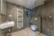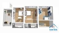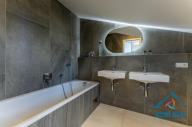 Horní patro: tři neprůchozí ložnice (17, 18 a 20 m2), přičemž hlavní ložnice disponuje en-suite koupelnou s vanou toaletou a bidetem a vstupem na slunnou terasu o výměře 22m2. Druhá koupelna na stejném podlaží nabídne sprchový kout a toaletu v oddělené místnosti.