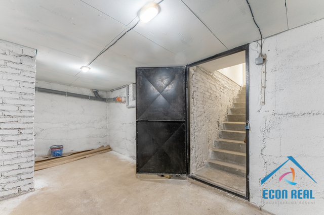 Praktická dispozice tohoto domu nabízí vzdušný obývací pokoj s KK vybaveným veškerými spotřebiči, tři velké neprůchozí ložnice, pracovnu, šatnu, celkem tři koupelny a jednu separátní toaletu navíc, spodní a horní terasu, garáž, technickou místnost s pračkou, sušičkou a plynovým kotlem, sklep, dílnu, úložnou půdu, elektrické venkovní rolety ve všech místnostech, kamerový a bezpečnostní systém a pro chvíle relaxace i zahradu osázenou stromy a okrasnými dřevinami.
