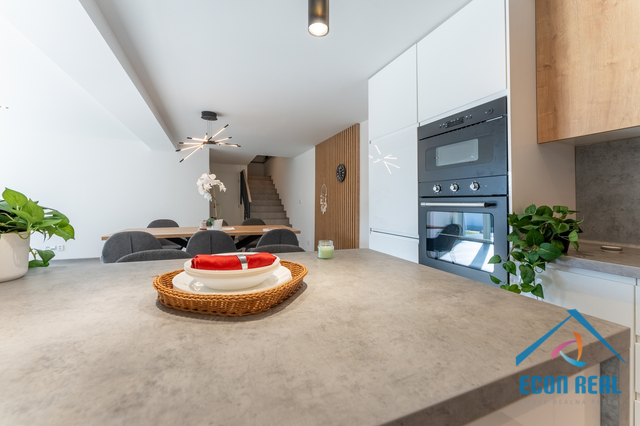Interiér včetně kvalitní kuchyně je laděn do světlých a teplých tónů a vyznačuje se praktičností a zároveň nadčasovým a moderním designem a velká okna v obou podlažích Vám zajistí naprostý pocit propojení s přírodou.
