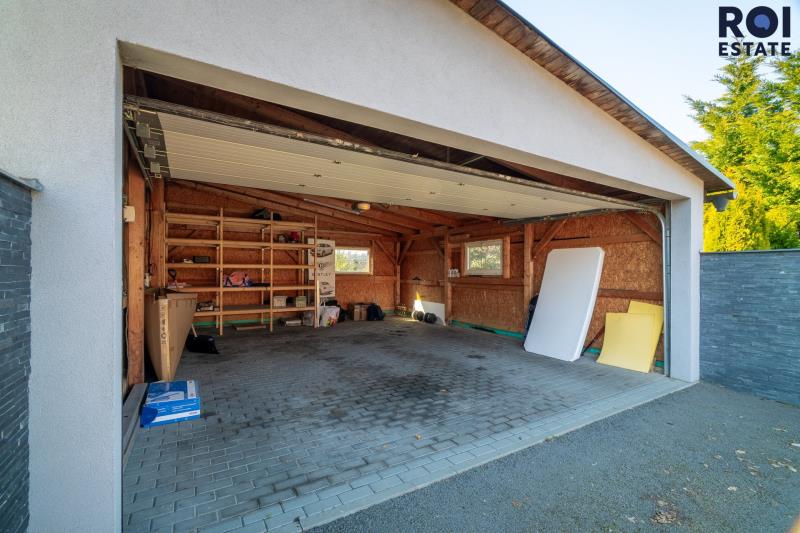 Hledáte klidné rodinné bydlení v přírodě, ale zároveň s rychlou dostupností do města? Tento moderní bungalov ve Vratimově nabídne obojí. Dům o dispozici 4+kk zaujme nejen svou promyšlenou dispozicí, ale i technologiemi, které zajišťují komfortní a úsporné bydlení. Po vstupu do domu Vás přivítá předsíň, ze které je vpravo samostatné WC a vlevo technická místnost s prostorem pro pračku. Srdcem domu je velkorysý otevřený prostor, kde se harmonicky propojuje kuchyňský kout, jídelna a obývací pokoj. Díky velkoformátovým oknům je interiér krásně prosvětlený a nabízí přímý vstup na terasu i výhled do udržované, vzrostlé zahrady. Dominantou obývací části je krb, který nejen dotváří útulnou atmosféru, ale zároveň efektivně rozvádí teplo do dalších místností. Z chodby se dále dostanete do klidové zóny domu, kde se nachází tři samostatné pokoje a prostorná koupelna vybavená vanou i sprchovým koutem. Dům je vybaven moderními technologiemi, které výrazně snižují provozní náklady a zvyšují komfort bydlení: tepelné čerpadlo, podlahové vytápění, solární kolektory pro ohřev vody, centrální vysavač a krb s rozvodem tepla. Velkou výhodou je také krásná, vzrostlá zahrada poskytující dostatek soukromí a prostor pro odpočinek, rodinné aktivity i letní posezení s přáteli. K domu náleží zastřešené stání s rolovacími vraty. Lokalita Vratimov nabízí příjemné bydlení v zeleni s výbornou dostupností do Ostravy, Havířova, ale i Frýdku-Místku, což ocení zejména rodiny hledající klidné zázemí bez kompromisů.