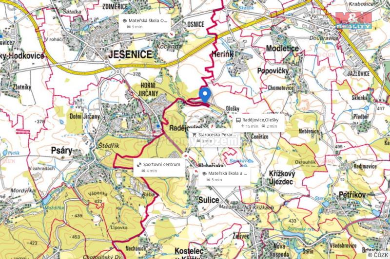 Pronájem rodinného domu 4+1 o ploše 120 m² v obci Olešky - Radějovice, pouze 6 km od Jesenice u Prahy. Dům se nachází na velmi klidném místě na okraji lesa s výhledem do okolní. V přízemí se nachází kuchyň, obývací pokoj a koupelna, v patře pak tři ložnice a WC. Prostorné sklepy zajišťují mnoho úložného prostoru. Dům se pronajímá kromě kuchyňské linky nezařízený. Na pozemku o ploše 428 m² je bazén s filtrací, kryté posezení a možnost parkování pro dvě auta. Praha - Chodov 15 min. autem. Volné ihned.