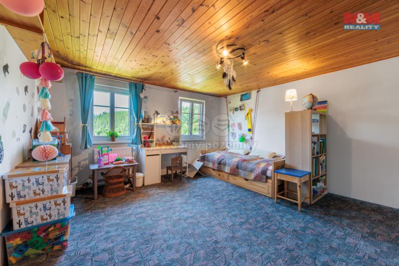 Nabízíme k dlouhodobému pronájmu prostorný rodinný dům o dispozici 4+1 s okrasnou zahradou v obci Stříbrná nedaleko Kraslic. Dům je po částečné rekonstrukci, má celkem 2 nadzemní podlaží a je celý podsklepený. V přízemí se nachází obývací pokoj s krbem, jídelnou a kuchyně. V horním patře dětský pokoj, ložnice a další prostory k využití. Topení je zajištěno plynovým kotlem na dálkové ovládání. K domu náleží parkovací místo pro 2 auta. V okolí nádherná příroda, sportovní vyžití ( lyžařský areál), služby v nedalekých Kraslicích. Více informací u makléře