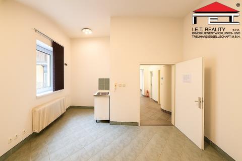 Nabízíme k pronájmu 4 řádně zkolaudované ordinace (23,13 m², 25,1 m², 5,47m² a 16,11 m²), ke kterým náleží poměrná část společně sdílených prostor čekáren 36,01 m² a sociálního zařízení 7,29 m² - celkem 113,11 m². Vše se nachází ve 3.NP modernizovaného, historického paláce v centru města. Prostory byly dosud užívány jako oční klinika s optickou laboratoří. Ordinace zubního lékaře v prostorách tohoto podlaží nadále zůstává. K pronájmu bude volné od 1.10.2025. Upozorňujeme, že nebyl majitelem nemovitosti předložen průkaz energetické náročnosti, a proto uvádíme třídu G.