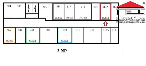 Pronájem kanceláře č. 314A, 19,4 m², situované ve 3.NP komerční budovy na ul. Kroftova v Brně. Jedná se o jednu samostatnou místnost s vlastním vstupem. V rámci podlaží je k dispozici sdílené sociální zařízení s kuchyňkou. Kancelář má vlastní zabezpečovací okruh s přístupem 24/7 a k pronáimu je volná ihned. Možné je využívat také omezenou kapacitu parkovacích míst.